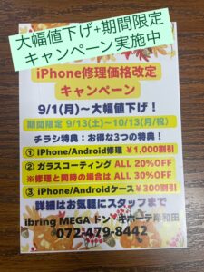 こんにちは~\(^o^)/ iPhoneのご相談!修理ならおまかせ! iPhone修理のibring MEGAドン・キホーテ岸和田店です! お手持ちのiPhoneが蘇ります など、ありましたら是非当店へお越しく […]