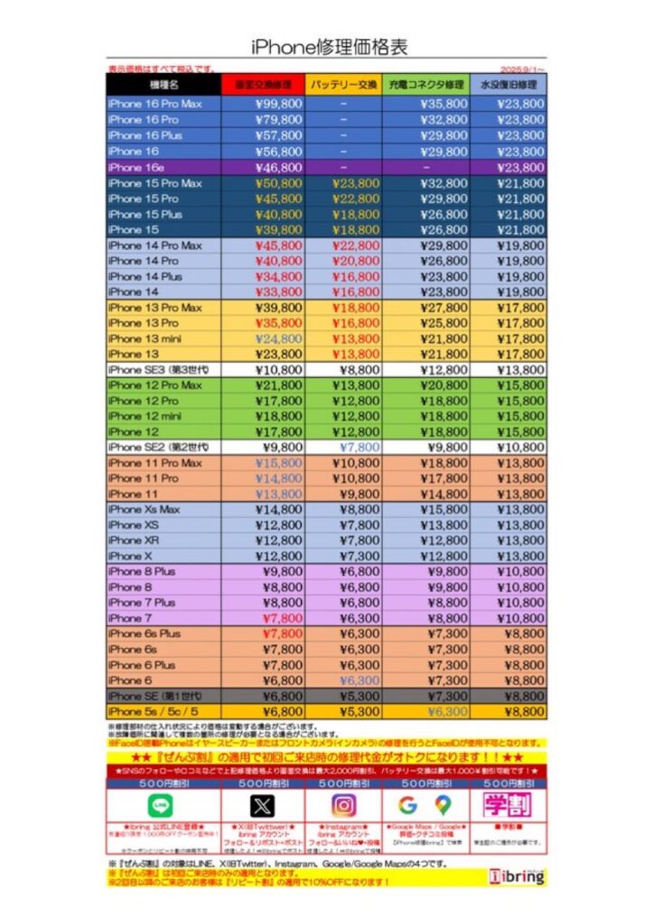 このたび、スマートフォン修理の料金をよりお求めやすい価格に改定いたしました!